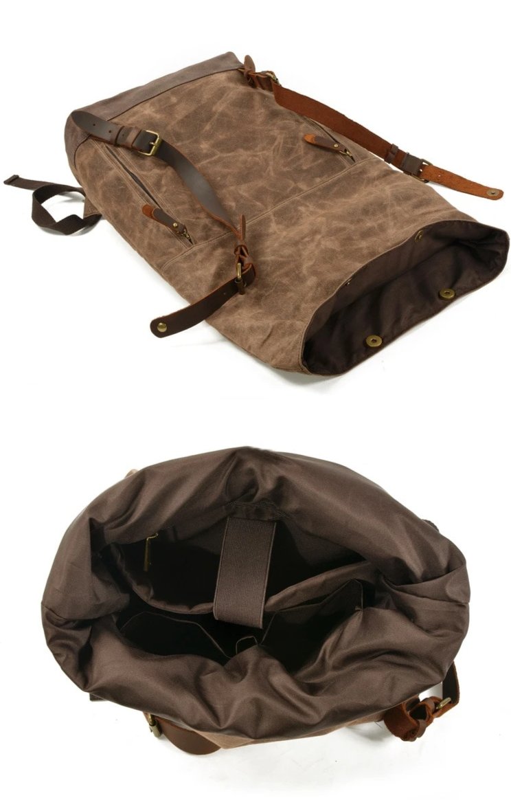 • Material: Oil Wax Canvas(Waterproof)+Cow Leather